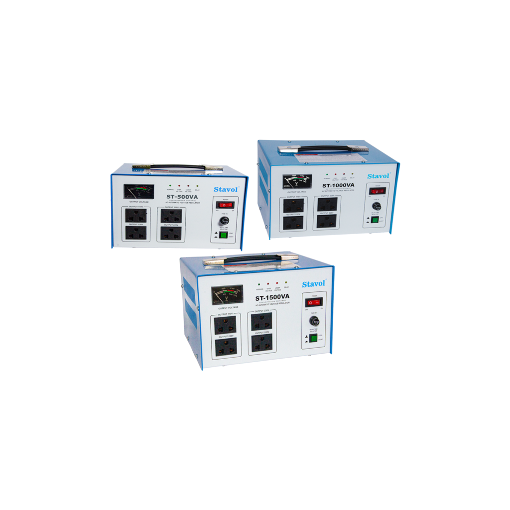 Available in 500W, 1000W, and 1500W, these AVRs offer reliable performance for everyday usage—from light electronics to medium household appliances. The STAVOL series is known for durability, low noise, and efficient voltage correction, making it a trusted choice for homes and offices.