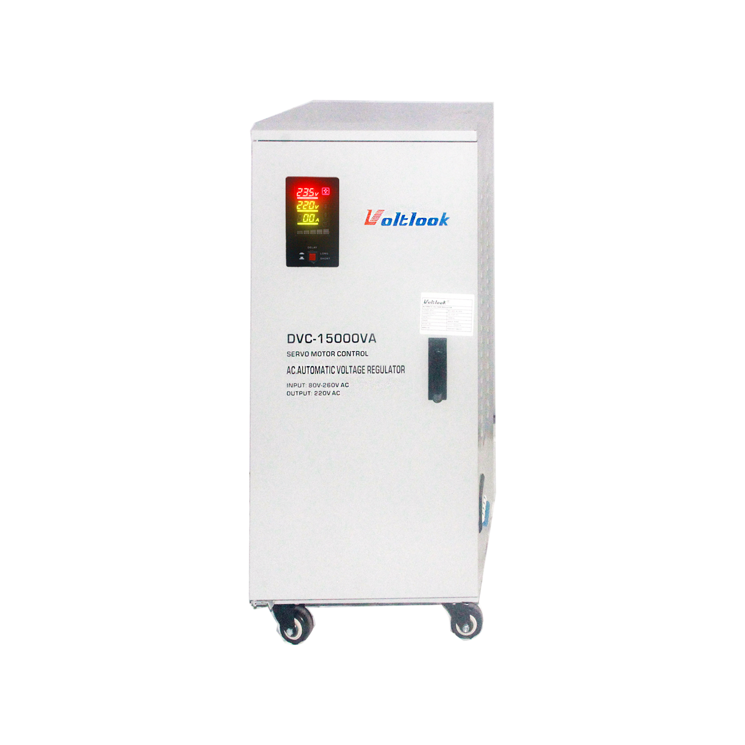 The DVC-15,000VA Automatic Voltage Regulator (AVR) is a single-phase, high-capacity stabilizer engineered to deliver consistent and reliable voltage regulation for heavy-duty appliances, office systems, and light industrial equipment. Powered by a servo motor and a pure copper transformer, it ensures high efficiency, durability, and precise voltage correction.