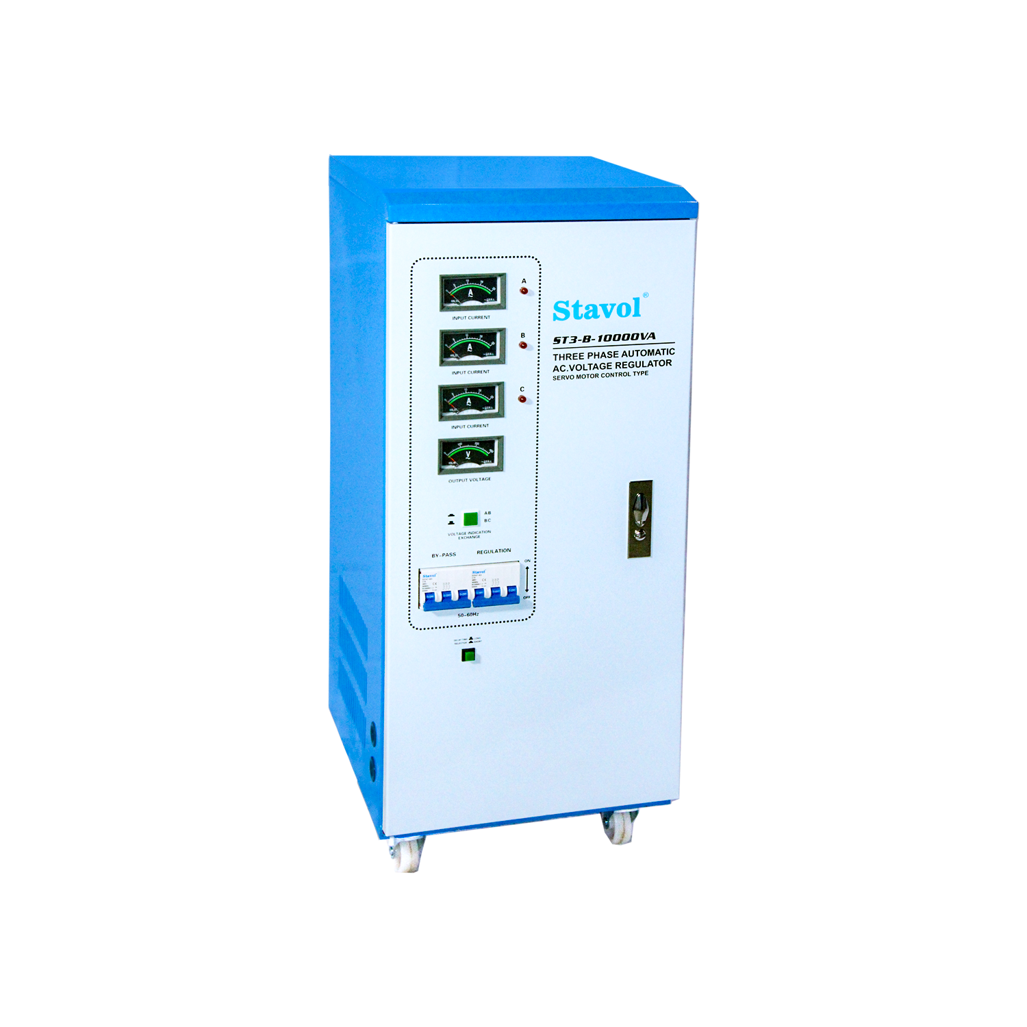 The STAVOL ST3-B-10,000VA Triphase Automatic Voltage Regulator is a heavy-duty power stabilization solution designed for three-phase electrical systems. Equipped with pure copper windings, wide input voltage tolerance, and a manual by-pass function, this AVR delivers stable and reliable 380V output even in areas with severe voltage fluctuations.