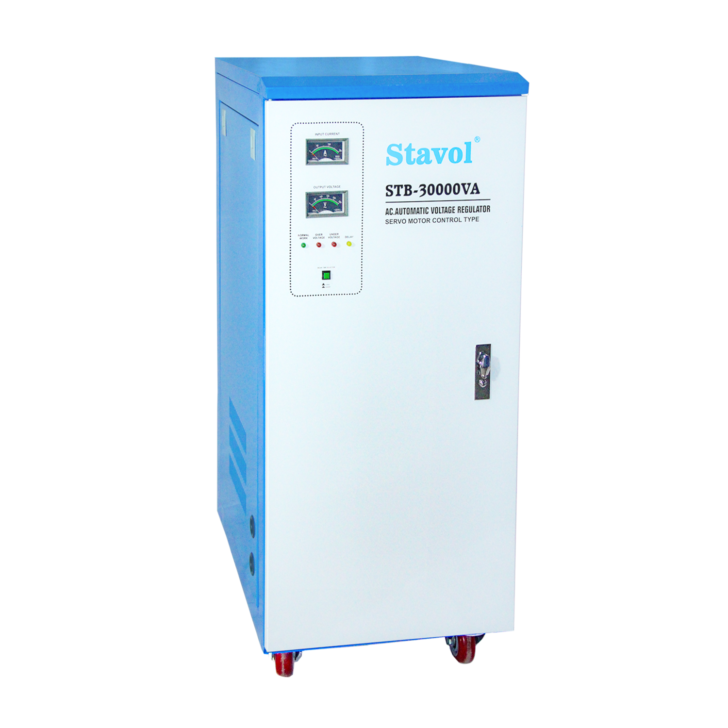 The STAVOL AVR 30,000VA with By-Pass (STB-30,000VA) is a heavy-duty automatic voltage regulator designed to deliver stable and reliable 220VAC output for high-load single-phase electrical systems. Built with pure copper windings, a magnetic contactor, and an integrated by-pass system, this AVR ensures continuous operation, enhanced safety, and long service life. Its robust construction and precise regulation protect sensitive and high-value equipment from voltage fluctuations, over-voltage, and under-voltage conditions.