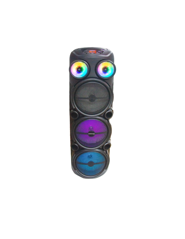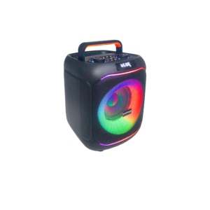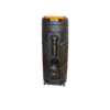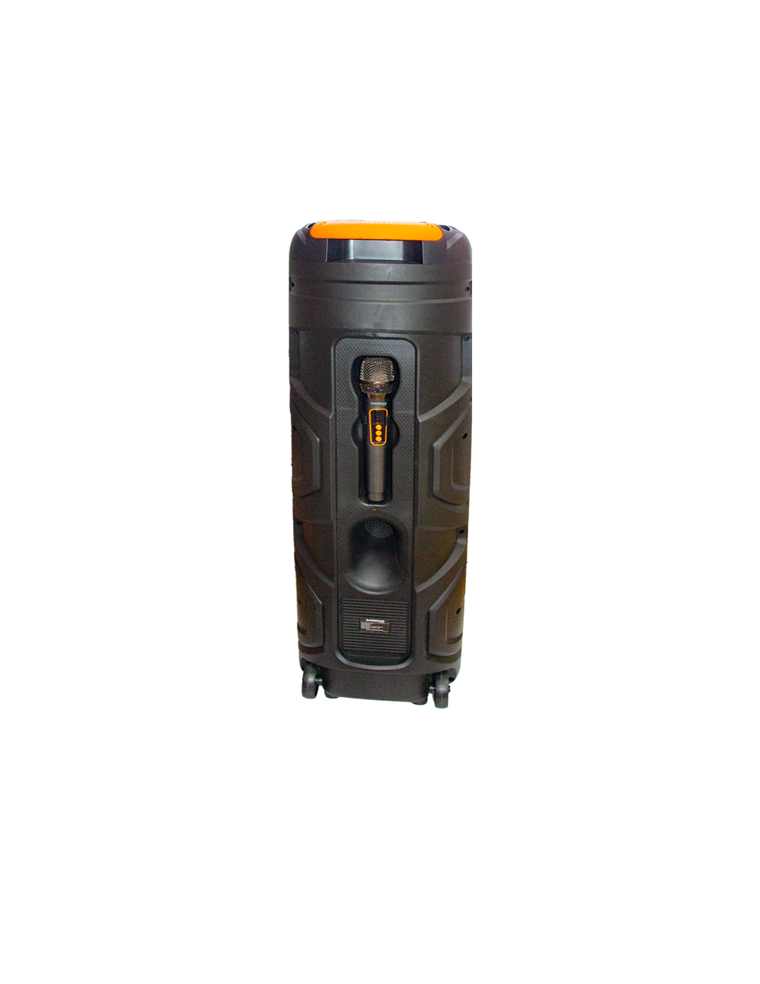 • Trolley Speaker Design: Built-in handle and wheels for easy transport and mobility.