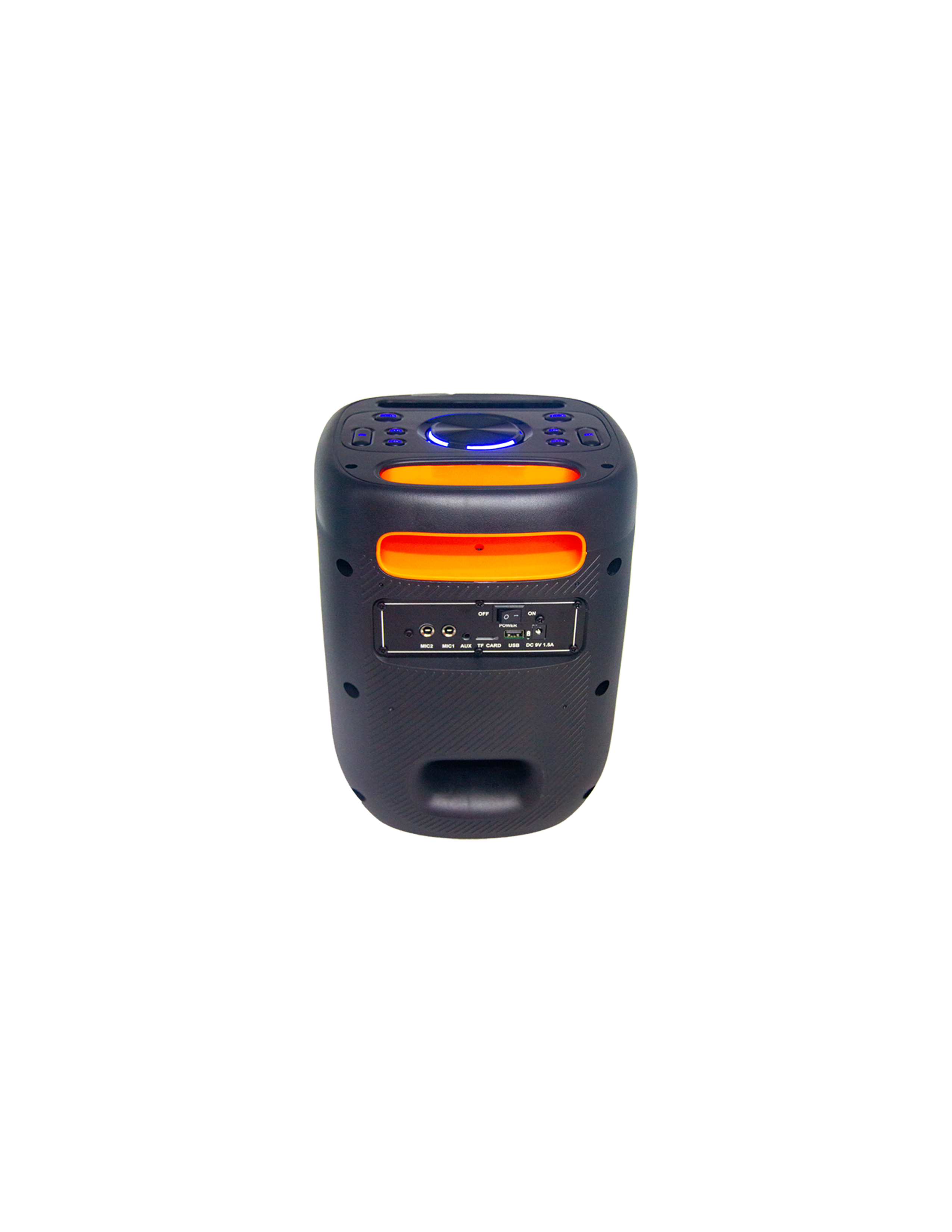 The SH-5253AW Portable Speaker is a powerful and stylish wireless audio system designed for karaoke, music playback, and entertainment on the go. With a 40-watt power output and a 6.5” full-range driver, it delivers deep bass and crystal-clear sound for any occasion. This speaker supports Bluetooth, USB, AUX, TWS, and FM radio connectivity, ensuring versatile playback options. It also features two rechargeable wireless microphones, rotary volume control, and a 6-mode LED lighting system to create an immersive party experience. The built-in 7.4V / 3600mAh battery provides long-lasting playtime, while the metal mesh grill and carry handle make it both durable and portable.
